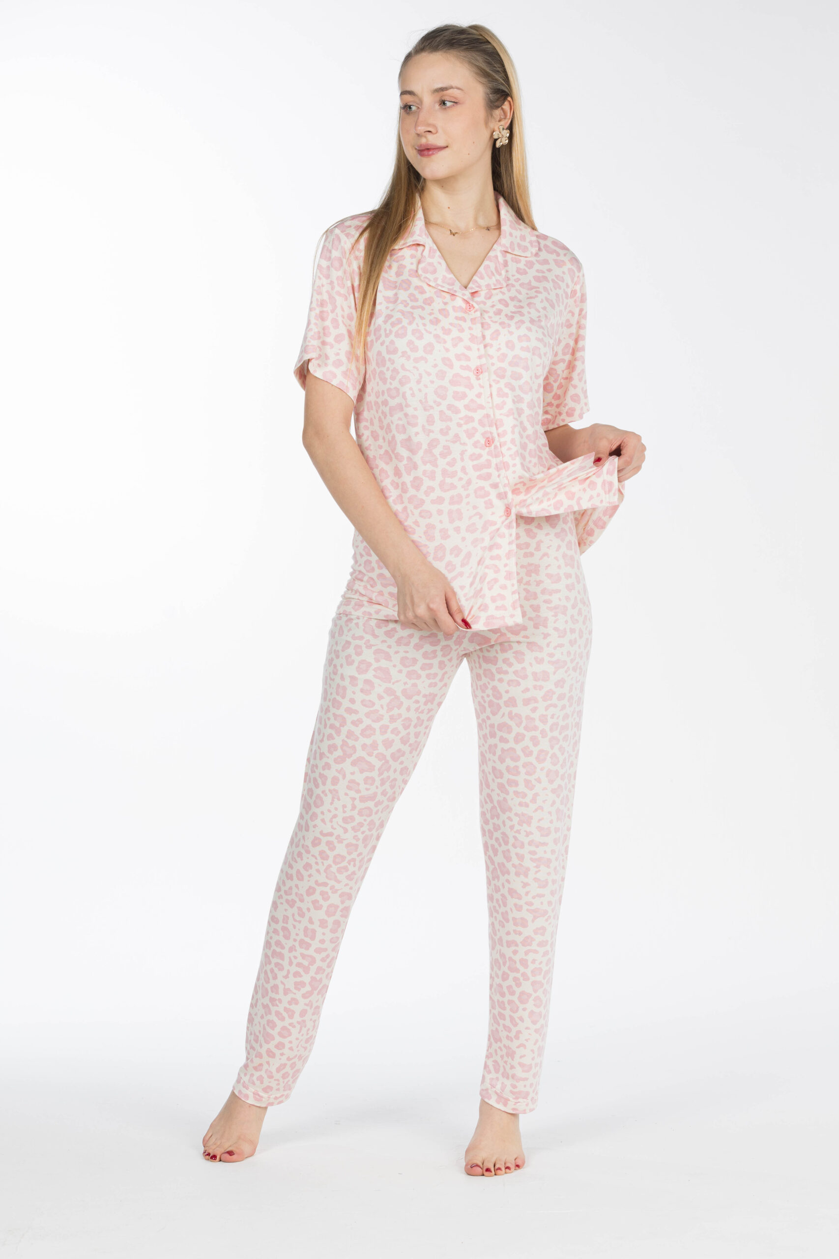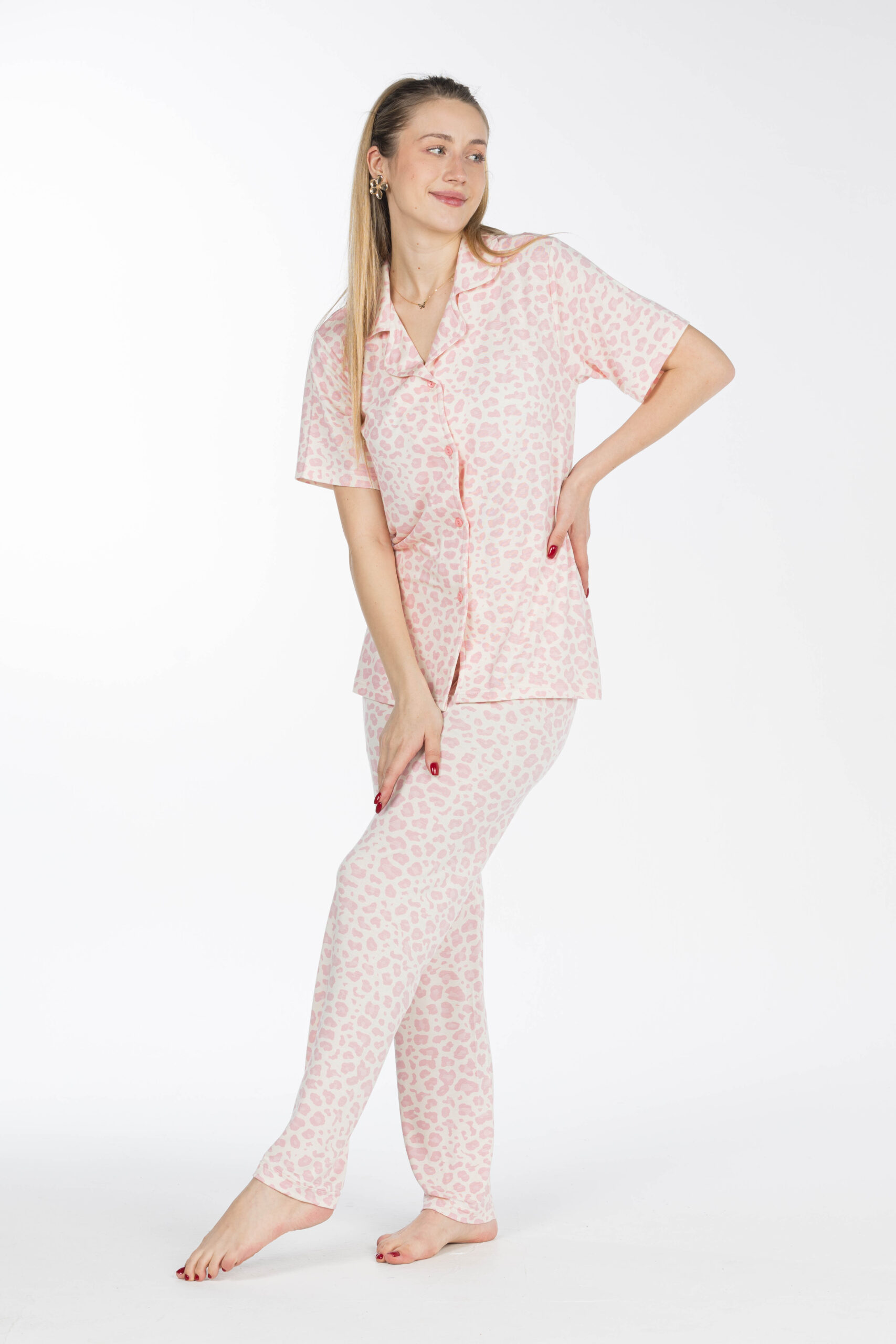 تصميم عصري بنقشة جذابة يضيف لمسة أنثوية راقية، مثالي للارتداء داخل المنزل أو أوقات الاسترخاء.