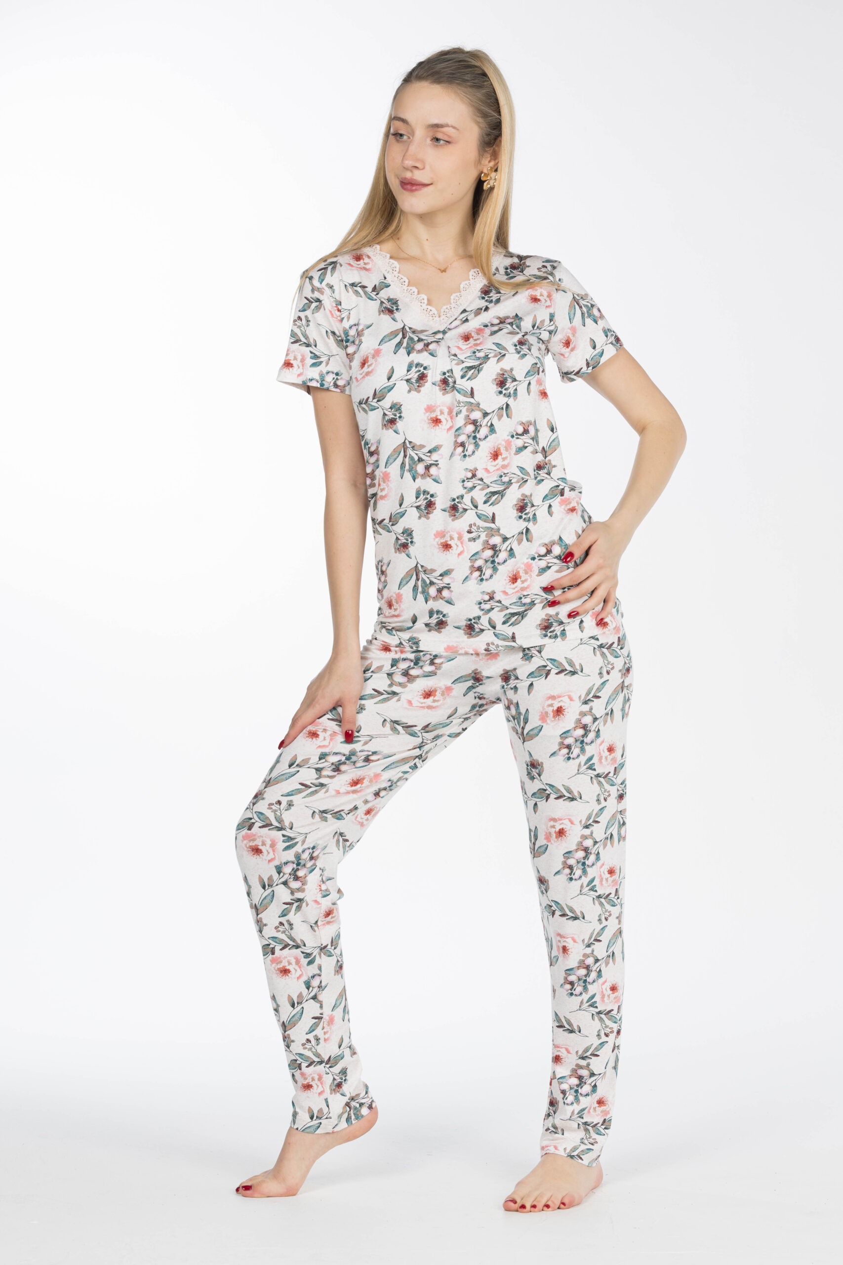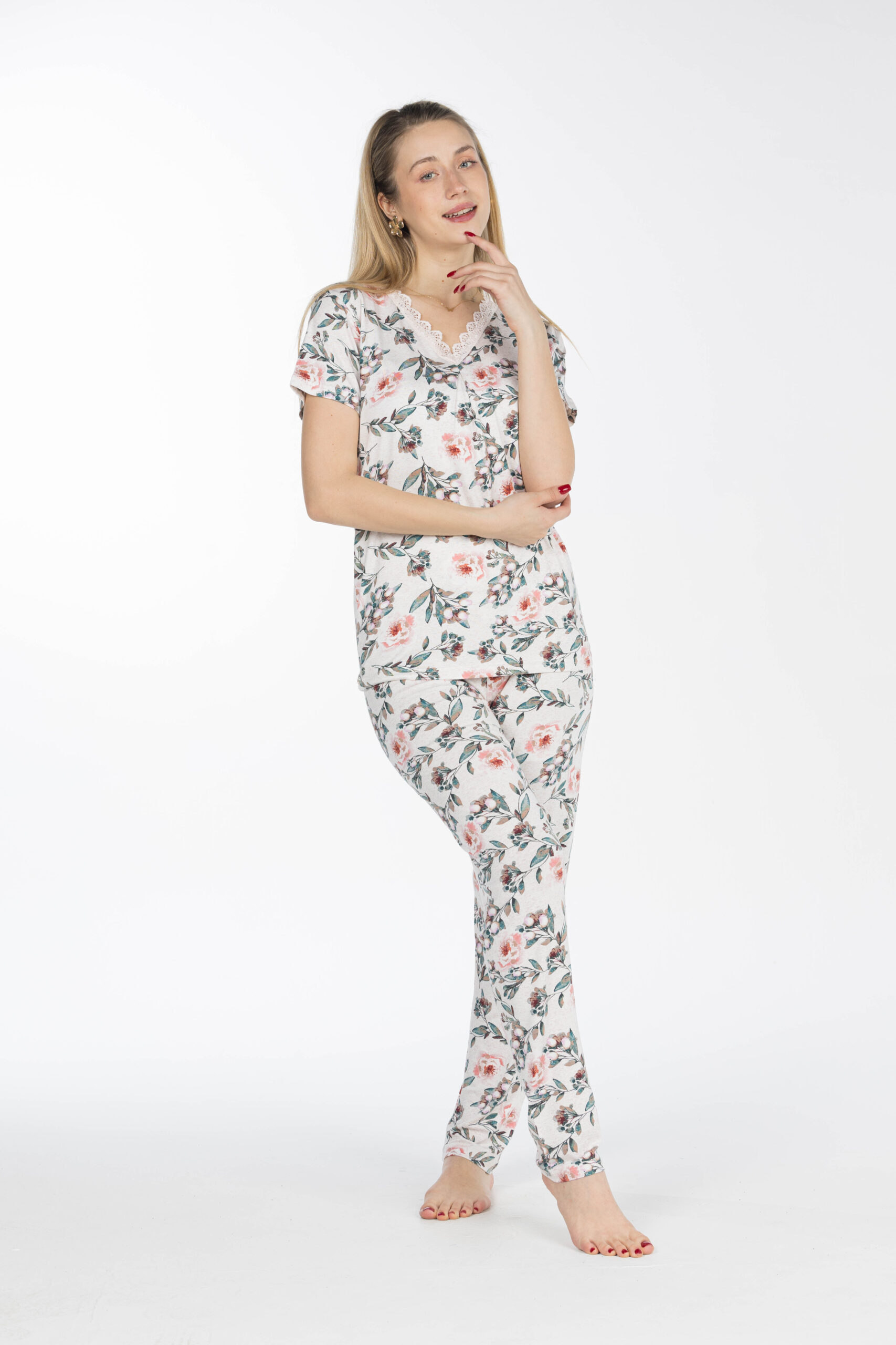 تصميم عصري بنقشة جذابة يضيف لمسة أنثوية راقية، مثالي للارتداء داخل المنزل أو أوقات الاسترخاء